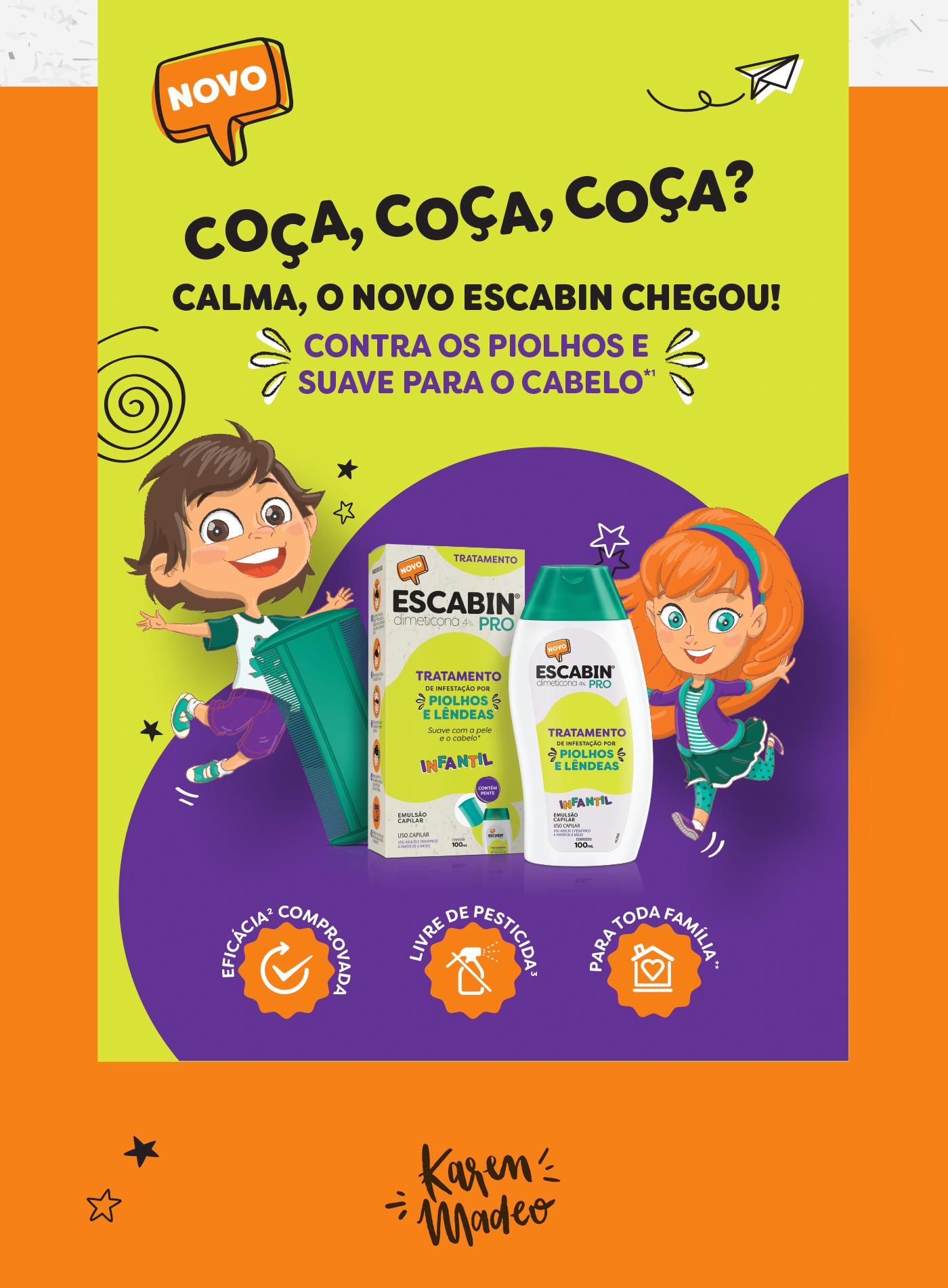 Desenvolvimento de nova embalagem, logo e key visual da marca Escabin. Conquistou o bronze na categoria Mercado – Saúde e Farmacêuticos do Prêmio ABRE da Embalagem Brasileira 2022.